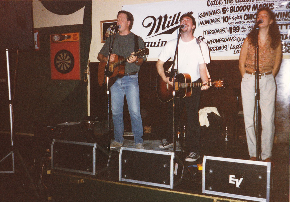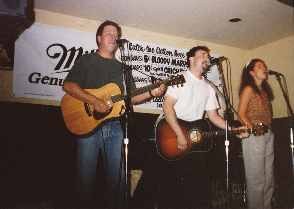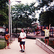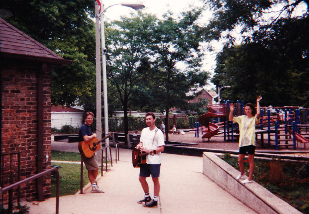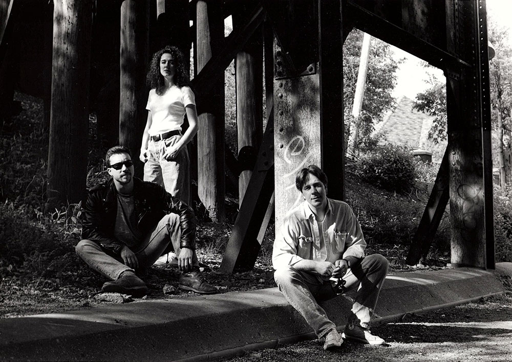 We the Cats began as an acoustic trio, which included Debra "Ruby" Petritsch, who went to be a member of ILK (with Mark Lolwing and Mike Petersen) and to sing on several releases by Mike and Gibson Arlasky's band, 45 Souls. Here are a series of We the Cats promotional photos from 1992, taken by our friend, Janet Chambers.